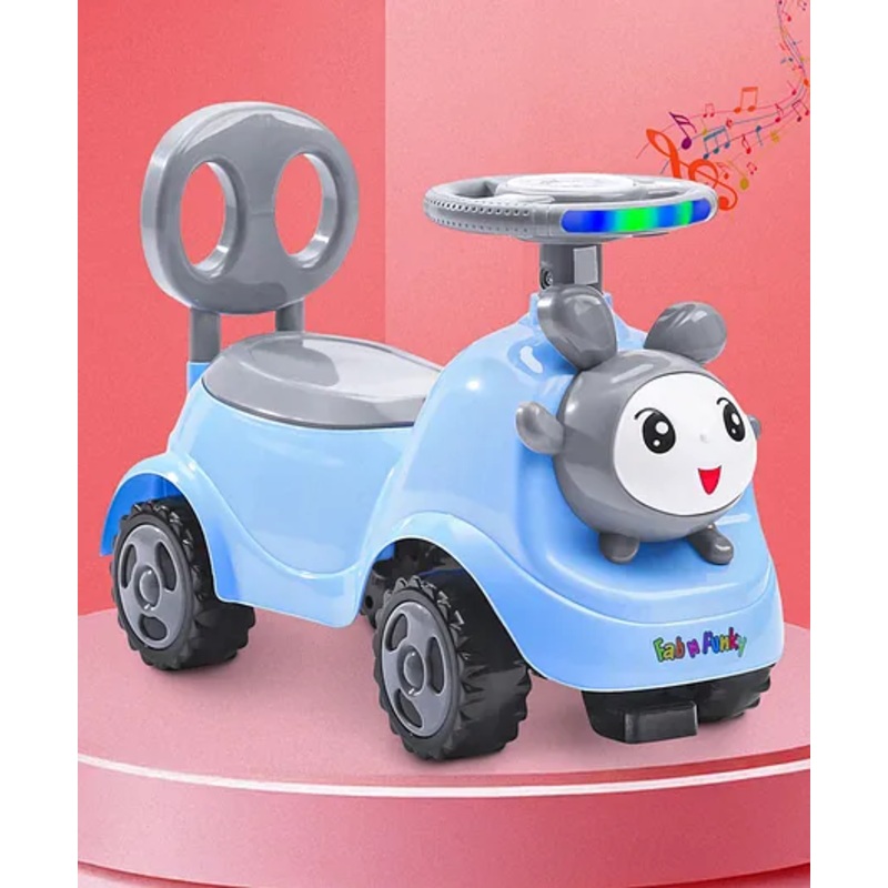 Baby Panda Deluxe Ride-On with LED Lights & Music and Under Seat Storage – Blue Grey