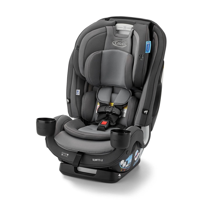 The Graco SlimFit3 Lx 3-in-1 Car Seat fits three across in your back seat, saving space without compromising on the safety and features you need. Thoughtful design choices make it easy to adjust and spacious enough for your growing child.