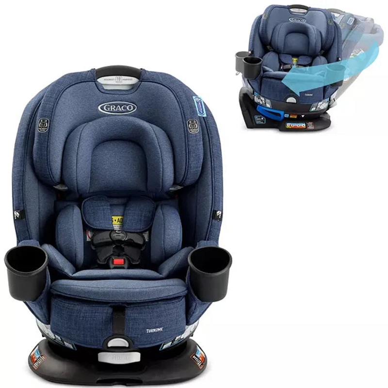 Turns so you dont have to twist! The Graco Turn2Me 3-in-1 Car Seat rotates from rear-facing for a face-to-face connection with baby to get them in and out of the car with ease! You’ll hear it “click” back into position for a safe and comfy ride. This 3-in-1 car seat from the most loved gear brand* features 3 modes of use to grow with your childfrom 4-100 lb! The No-Rethread Simply Safe Adjust Harness System allows you to adjust the height of the 10-position headrest and harness in one motion for just the right fit. Our easy installation SnugLock technology works in rear- and forward-facing modes to get your seat installed in less than one minute. We included our push-button InRight LATCH, which provides an easy, one-second attachment with an audible click to help ensure secure installation. The easy-to-read level indicator helps to eliminate installation guesswork, and the 4-position recline smoothly adjusts to help with installation and keeps your child comfy. The 2 easy-to-clean cup holders keep your child’s drinks and snacks close at hand. Plush infant inserts help to keep your infant feeling cradled and comfortable. A steel-reinforced frame provides strength and durability for years of use. The car seat is Graco ProtectPlus Engineered to help protect in frontal, side, rear, and rollover crashes. *based on Brand Preceptor 2020.
