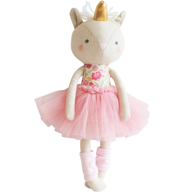 This Baby Unicorn doll is too cute! She has a removable tutu and leg warmers to make playtime dress up's fun. Suitable from 3yrs and up.Features:Linen & cotton outer with a floral feature bodiceSoft pink tulle tutu - removableCute removable leg warmersEmbr
