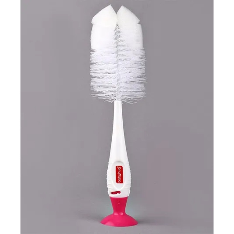 2 Brushes Includes a bottle brush and a soft nipple brush for comprehensive cleaning.Sponge Tip Helps reach all areas of the bottle with a foamy swipe for thorough cleaning.Non-Slip Handle Provides a secure grip even with soapy hands, making cleaning easier.Upright Brush Base Sits upright on your countertop when not in use, airing out quickly to keep the brush germ-free.Durable Bristles Scratch-free yet soft, ensuring a gentle cleaning of all surfaces.Soft Nipple Brush Designed to fit all types of teats without causing any damage, it fits in the bottle brush handle.Ideal for Standard and Angled Bottles Versatile design perfect for various bottle shapes.Top Rack Dishwasher Safe Easy to clean and maintain, simply place it in the top rack of the dishwasher.Step-by-Step GuideBottle CleaningRinse Rinse the bottle with warm water to remove any milk residue.Scrub Use the bottle brush to scrub the inside of the bottle thoroughly. The rotating feature helps reach all areas.Rinse Again Rinse the bottle with clean water.Nipple CleaningRinse Rinse the nipple with warm water.Scrub Use the smaller nipple brush to clean inside the nipple, ensuring all milk residue is removed.Rinse Again Rinse the nipple with clean water.Dry Allow both the bottle and nipple to air dry on a clean rack. Specifications Brand – Babyhug Type – 2 In 1 Bottle & Nipple Cleaning Brush Age – 0 to 24 MonthsHandle – Polypropylene Bristle – Nylon Bristle Stem – Stainless Steel Suction – Thermoplastic Rubber Packing Dimension -L 32.5, W 9, H 6 cm Big Brush Length – 22 cm Small Brush Length – 10 cm Product DescriptionIntroducing the Babyhug 2 In 1 Bottle & Nipple Cleaning Brush – Pink, a versatile and practical solution for keeping your baby’s feeding gear sparkling clean. This set includes a bottle brush and a soft nipple brush, ensuring thorough cleaning of both bottles and teats. The sponge tip allows you to reach all areas with a swipe. The brush base sits upright on your counter when not in use, airing out quickly to keep your brush far away from germs. The durable bristles are scratch-free yet soft, making it gentle on all surfaces. Items included in pack One 2 In 1 Bottle & Nipple Cleaning BrushThe 2 in 1 bottle and nipple cleaning brush allows you to clean all feeding bottles and accessories. The bristles eliminates all food residue, even in the areas of bottles that are most difficult to reach. Has soft & flexible bristles for perfect cleaning. Note The product comes in different colors and packaging, the one available will be shipped to you.