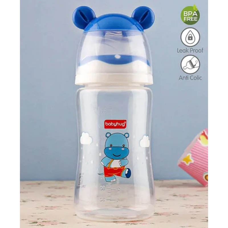 Babyhug Anti Colic Feeding Bottle Hippo Shape Blue – 250 ml