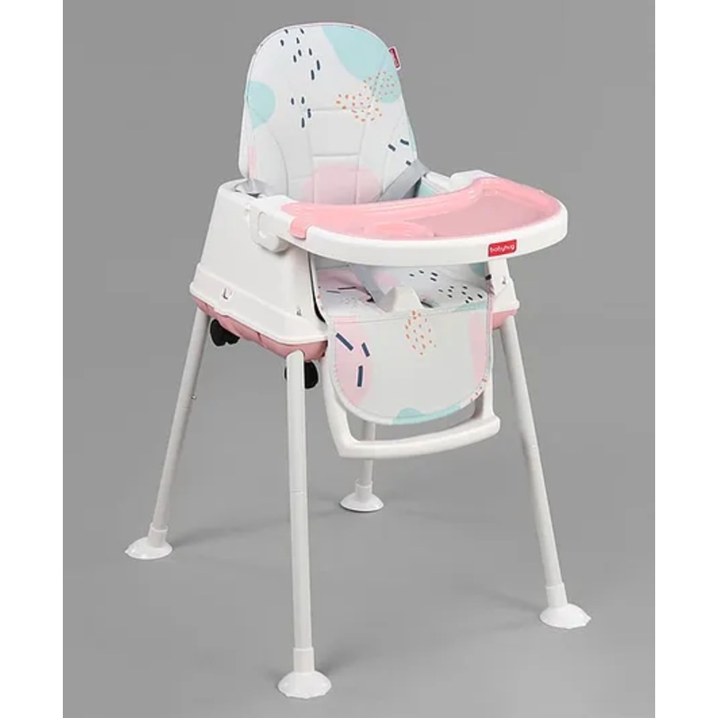 Babyhug cushioned High chair makes the little one’s dining time easy and convenient. Light weight and compact design allows you to keep your baby close to the table. The space saver high chair frame easily stows away. It also has a removable and easy washable dining tray which is really practical and useful. Easy to maintain, its comfortable seat is also removable and washable. The highchair folds up neatly. Once closed it occupies very little space and can easily be carried around.