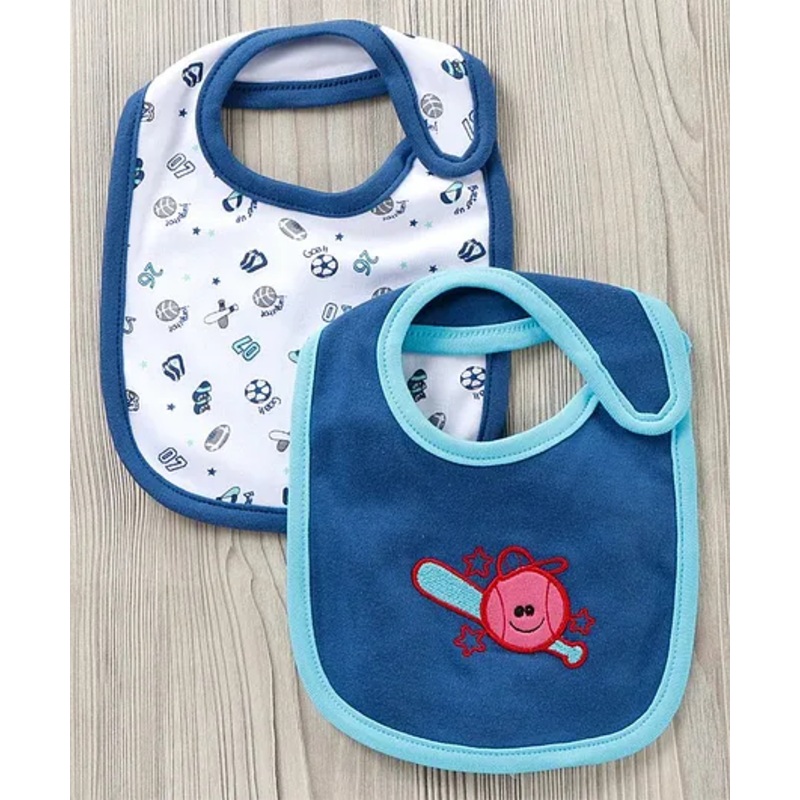 Babyhug Cotton Bib With Velcro Sports Print Pack of 2 – Blue