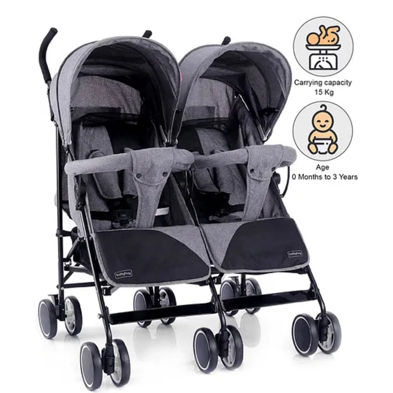Twin Stroller-Ideal for twins to enjoy outdoor walk with parentsUmbrella Fold- Easy to fold which makes the stroller very compact to hold while you are outdoors and store indoorSuspension Wheels Front wheels with shock absorbers provides a smooth ride even