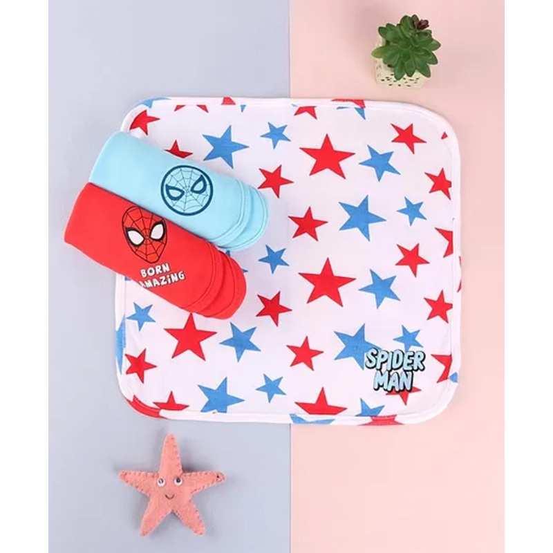 Babyhug Marvel Interlock Knit Wash cloth With Spider Man Graphics L 29 x H 29 cm Pack of 3 – White Light Blue Red