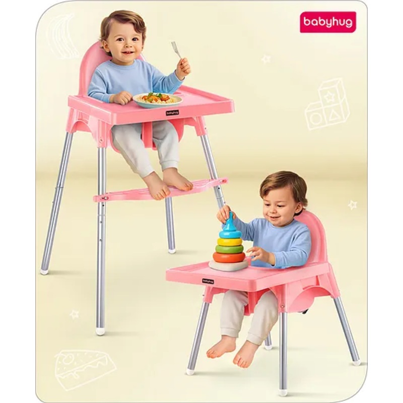 Durable ABS Plastic BuildMade from high-quality ABS plastic that is not only strong and long-lasting but also easy to wipe clean after every meal.2 ModesCan be assembled as chair height or small feeding chair perfectly suit your baby's growth stages.2-Leve
