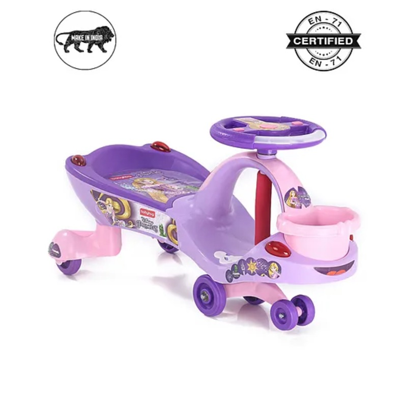 Spacious Seat - This seat is spacious and anti slip so that the child has a comfortable rideWide foot rest - Foot rest is wide for comfort of the childMusic & Lights - 180 degree turn with light and musicWheels - The swing car is powered by easy twisting o