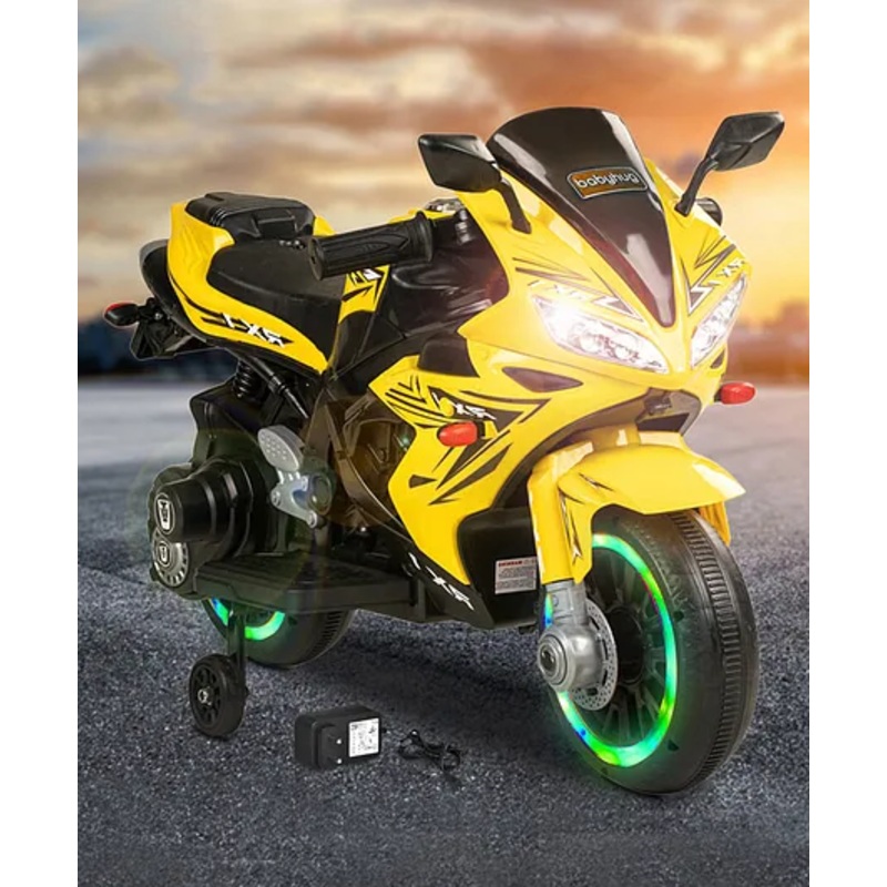 Babyhug R1 EV Battery Operated Ride On Bike With Music LED Lights & Hand Accelerator – Yellow