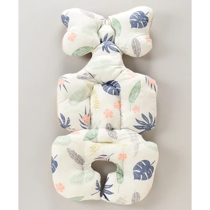 Babyhug Stroller Cushion Leaf Print – White| Breathable Fabric| Soft & Fluffy