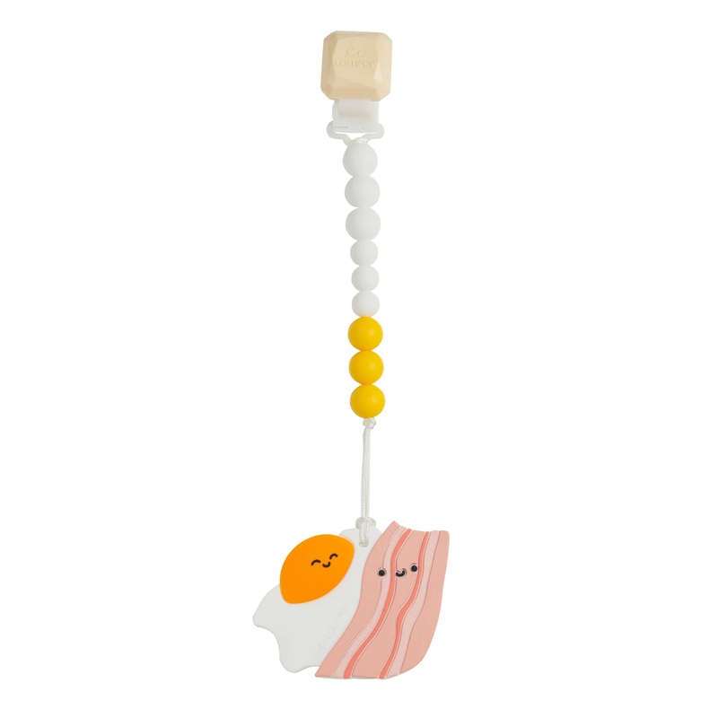 The Bacon and Egg Teetherby Loulou Lollipop is a silicone teether with clip set comes with a standalone silicone teether and a pacifier/teether holder for the ultimate teething relief.Key Features:Made of 100% high-quality food-grade siliconeBPA Free, Non-
