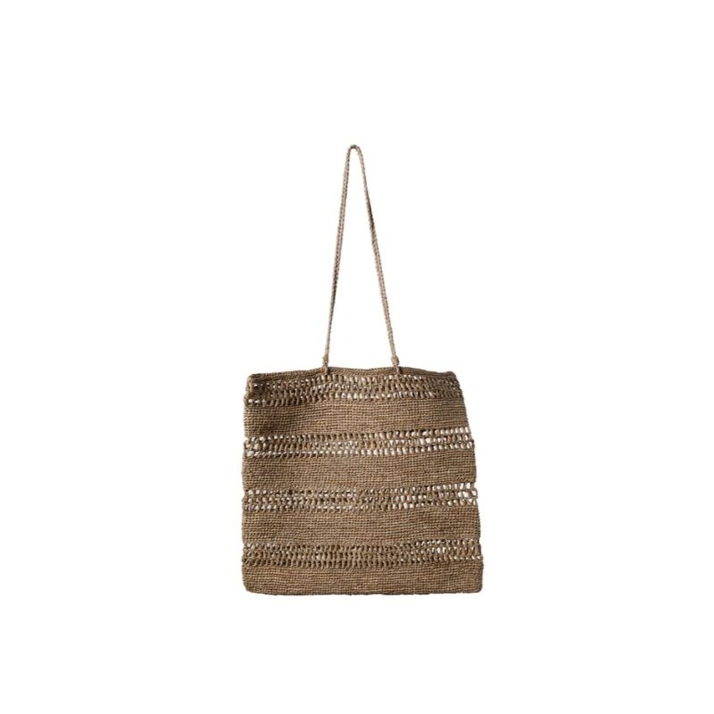 'Gloria' bag has pretty plaited multi coloured handles in pink, blue, natural and tea.Material - raffiaSize - height excluding handles 26cm, width 26cmColour - tea, light pink, natural