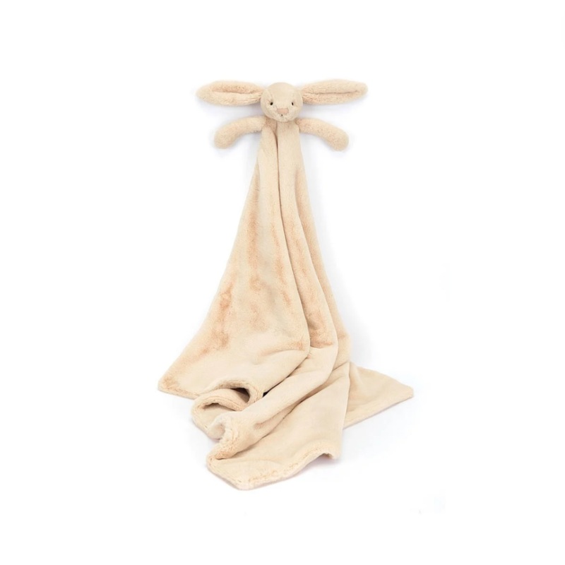 A luxurious newborn gift, the Bashful Luxe Willow Bunny Blankie is exquisitely soft in a latte hued fur. Featuring the head and paws of Willow Bunny in the corner of a silky soft blanket. Rolled and wrapped with a grosgrain ribbon and elegantly presented i