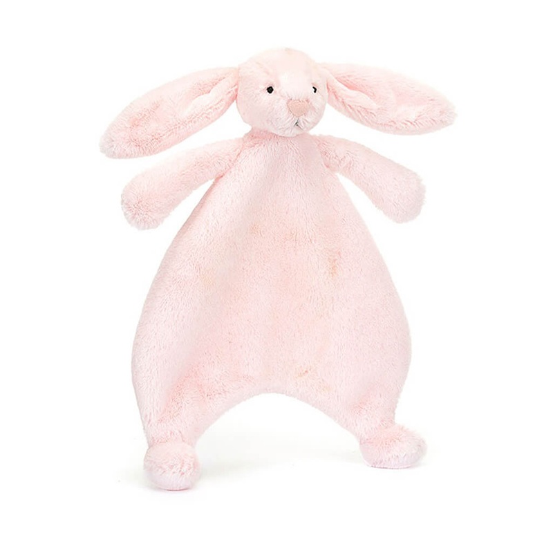 Bashful Bunny Comforter features our beloved Bashful Bunny signature long lop ears, a pink suedette nose and embroidered eyes. Designed with an un-stuffed body yet delicately squashy paws and bobble feet, making it easy for little hands to grab hold of and