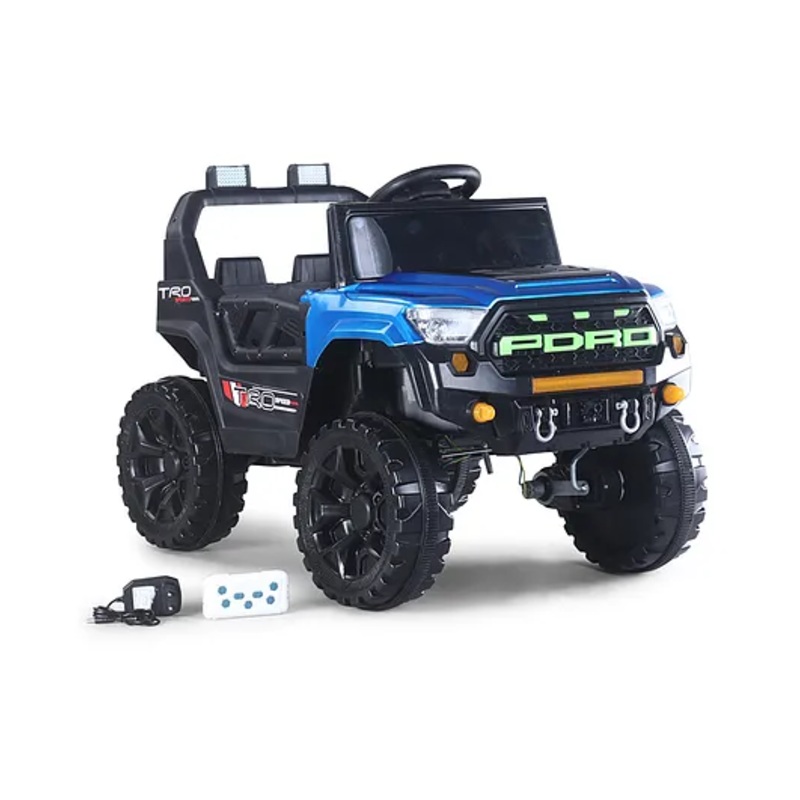 OCAL33215258502Battery Operated Ride On Jeep with Music & LED Headlight Openable Doors| Wide Comfortable Seat| Forward & Reverse Drive| Rechargeable Battery| Remote Control - Blue