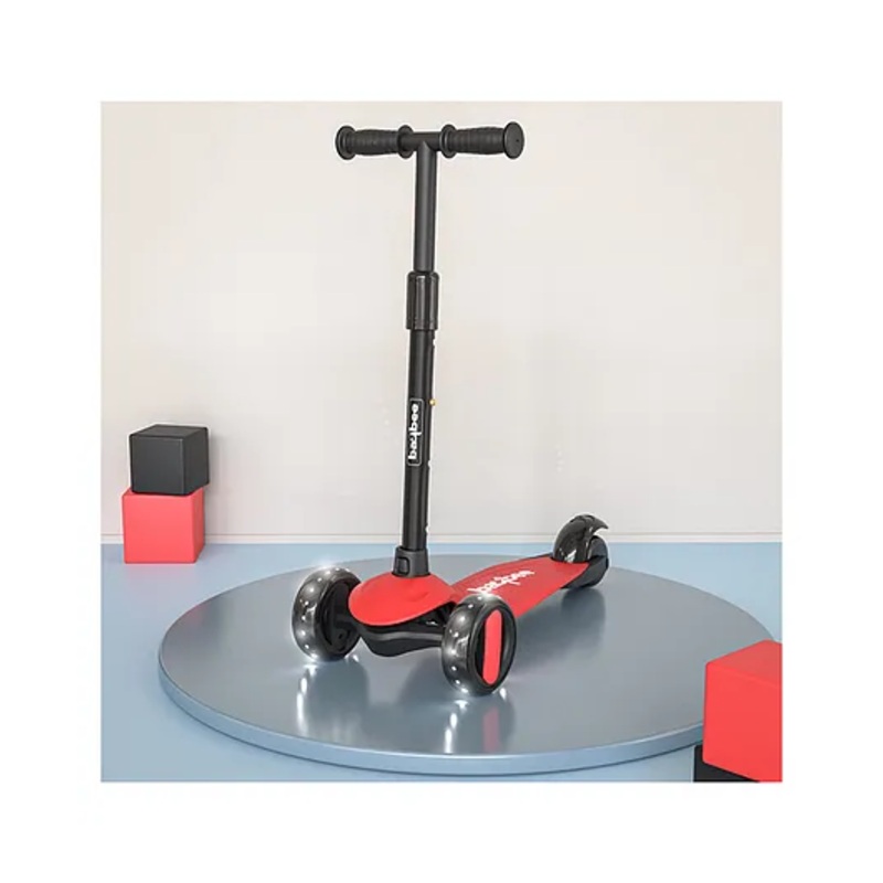 BAYBEE Alpha Kick Scooter for Kids 3 Wheel Kids Scooter with 4 Height Adjustable Handle Runner Scooter with LED PU Wheels & Brake Skate Scooter for Kids – Red
