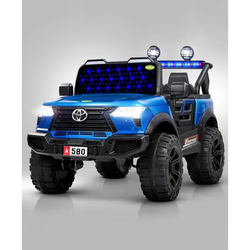 - Realistic Driving Experience with Feature-Packed Design Designed to resemble a real vehicle, this battery-operated jeep provides an authentic driving adventure. With features like Swing mode, horn, LED headlights, RGB Windshield, inbuilt music, USB, Aux, and a remote controller, it’s loaded with fun! Twin butterfly doors, a hidden charging hole, and multiple connectivity options make every ride exciting.