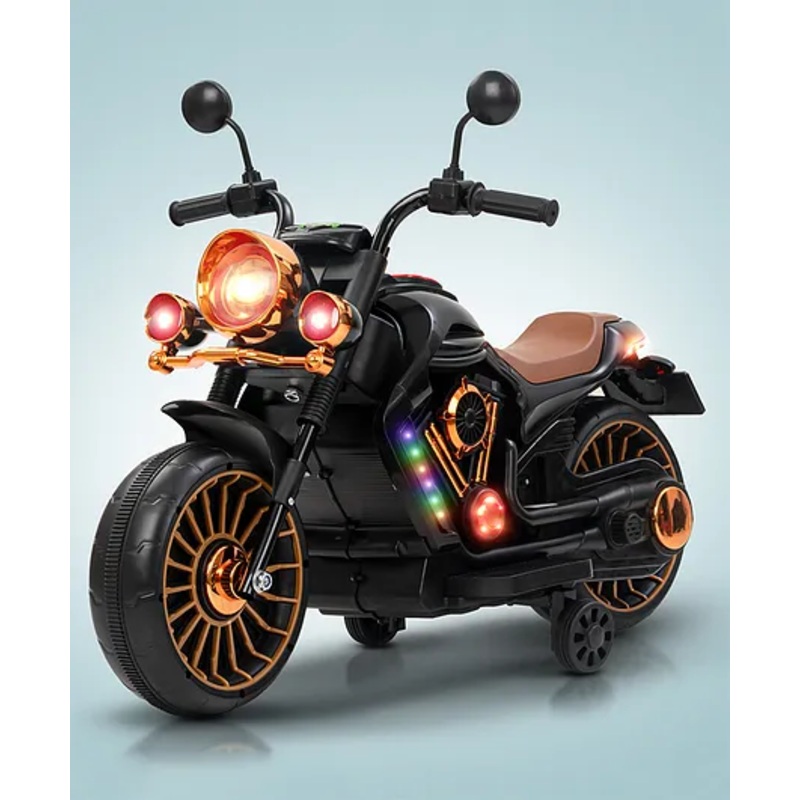- Easy-to-Use Controls for Independent Driving Confidence Featuring a push-button start, foot pedal accelerator, and intuitive controls, this electric ride-on bike for kids helps little riders gain confidence and develop coordination skills. It’s the perfect first bike for kids to learn the joy of riding independently. Important Assembly Note The product requires simple self-assembly. Please ensure the battery’s positive terminal (red wire) is connected to the battery before charging. A user manual and charger are included in the box for hassle-free setup.SpecificationsBrand – BaybeeType – Battery Operated Ride on BikeAge – 2 to 5 YearsBody SpecificationsMusic & Light – YesAux & USB Port – YesSwitch – Volume, Light & Music, ON\OFF, Forward & ReverseFoot Accelerator – YesBattery & Charger Included – YesTechnical SpecificationsBox Dimensions – L 60 x B 30x H 30 cmProduct Dimension – L 90 x B 35 x H 5 cmCharging Time – 8-12 Hrs.Run Time – 40 MinMax. Speed – 3 – 4 KM\HCarrying capacity – 30 kgNet weight – 6 kgGross weight – 7 kgProduct DescriptionThis big battery-operated bike is equipped with a high-capacity rechargeable battery, offering long-lasting performance for uninterrupted fun. Perfect for kids aged 2 to 5 years, this ride-on bike for kids delivers smooth and safe rides both indoors and outdoors. The Baybee electric bike for kids comes with bright LED headlights, giving it a stylish and realistic chopper look. These lights not only enhance visibility but also add to the excitement of riding, making your child feel like a real rider on their own toy gadi for kids. Keep your little one entertained with pre-loaded music and a USB port that allows you to play their favorite tunes while riding. This ride-on toy bike provides both fun and sensory engagement, turning every ride into a joyful, musical adventure. With its ergonomic seat, wide tires, and stable build, this kids bike to drive ensures maximum safety and comfort. Whether it’s a casual indoor cruise or outdoor driveway ride, it offers a secure experience for both boys and girls aged 2 to 5 years. Designed with kid-friendly controls, this electric ride-on bike helps your child develop coordination and independence. With features like a push-button start, foot pedal accelerator, and simple navigation, kids gain confidence as they enjoy their very own baby chopper bike.Items included in the package 1 Battery-operated ride-on Bike with Battery and Charger