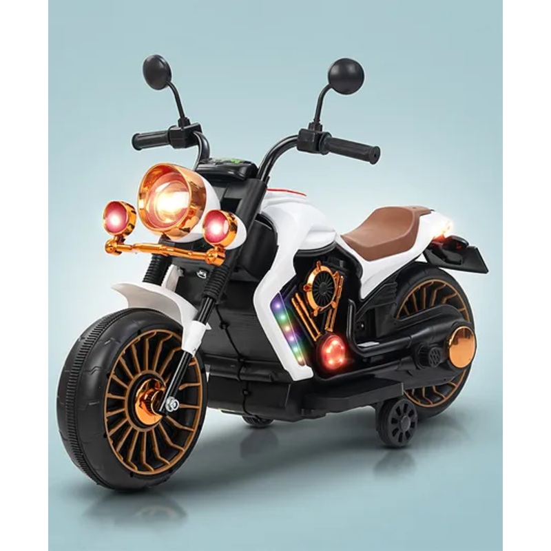 - Easy-to-Use Controls for Independent Driving Confidence Featuring a push-button start, foot pedal accelerator, and intuitive controls, this electric ride-on bike for kids helps little riders gain confidence and develop coordination skills. It’s the perfect first bike for kids to learn the joy of riding independently. Important Assembly Note The product requires simple self-assembly. Please ensure the battery’s positive terminal (red wire) is connected to the battery before charging. A user manual and charger are included in the box for hassle-free setup.SpecificationsBrand – BaybeeType – Battery Operated Ride on BikeAge – 2 to 5 YearsBody SpecificationsMusic & Light – YesAux & USB Port – YesSwitch – Volume, Light & Music, ON\OFF, Forward & ReverseFoot Accelerator – YesBattery & Charger Included – YesTechnical SpecificationsBox Dimensions – L 60 x B 30x H 30 cmProduct Dimension – L 90 x B 35 x H 5 cmCharging Time – 8-12 Hrs.Run Time – 40 MinMax. Speed – 3 – 4 KM\HCarrying capacity – 30 kgNet weight – 6 kgGross weight – 7 kgProduct DescriptionThis big battery-operated bike is equipped with a high-capacity rechargeable battery, offering long-lasting performance for uninterrupted fun. Perfect for kids aged 2 to 5 years, this ride-on bike for kids delivers smooth and safe rides both indoors and outdoors. The Baybee electric bike for kids comes with bright LED headlights, giving it a stylish and realistic chopper look. These lights not only enhance visibility but also add to the excitement of riding, making your child feel like a real rider on their own toy gadi for kids. Keep your little one entertained with pre-loaded music and a USB port that allows you to play their favorite tunes while riding. This ride-on toy bike provides both fun and sensory engagement, turning every ride into a joyful, musical adventure. With its ergonomic seat, wide tires, and stable build, this kids bike to drive ensures maximum safety and comfort. Whether it’s a casual indoor cruise or outdoor driveway ride, it offers a secure experience for both boys and girls aged 2 to 5 years. Designed with kid-friendly controls, this electric ride-on bike helps your child develop coordination and independence. With features like a push-button start, foot pedal accelerator, and simple navigation, kids gain confidence as they enjoy their very own baby chopper bike.Items included in the package 1 Battery-operated ride-on Bike with Battery and Charger