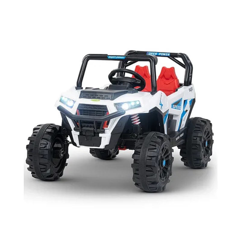 - Realistic Off-Road UTV Design Key start, adjustable seatbelt, bright LED lights, double lockable doors, powerful four driving force, high chassis design & wear-resistant explosion-proof wheels for off-road style. Your kids can drive on various of rough terrains and get a great driving experience.