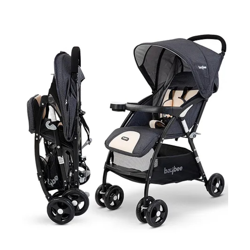 Baybee Portable Infant Baby Stroller for Newborn Babies with Aluminum Frame 3-Position Adjustable Seat Canopy Bassinet Safety harness Storage Basket & Rear Brake – Grey