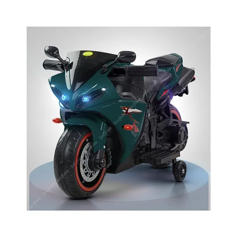 Our Baybee Battery Operated Bike transforms littleexplorers intofearless riders on this electric motorbike! It’s engineeredfor straightforwardenjoyment just step on the pedal to rev up the fun onany smoothterrain. The stability of added training wheels ensures that eventhe smallestadventurers can safely partake in the excitement. Immerse yourselfIn athrilling ride with its multi-functional capabilities! Enjoy the pre-loaded melodiesor connect to USB for personalized playlists, making every journey an exhilarating experience. The functioning headlights offer a touch of authenticity, while the easy-to-use controls ensure smooth navigation. Enjoy Endless Fun with a Rechargeable Battery Adventure doesn’t have to pause a charger comes included! Once fully charged, the battery supports up tominutesof continuous playtime, guaranteeing a generous share of joy. Safety-First Design for Little Cyclists With the support of training wheels,this electricmotorcycle stays upright and avoids falls. The non-slip tires secure a firm grip on smooth surfaces for a reliable ride, and the bright LED lights make evening rides possible. Its dynamic, true-to-life appearance fuels the imagination and elevates the excitement. Simple Setup for Immediate Entertainment Dive into entertainment with easy-to-follow setup instructions.Connect the red wire to the battery, charge it up, and you’re set for action.Ideal for children aged 1 to 3 years, this isn’t just any present; it’s the gateway to an extraordinary adventure.