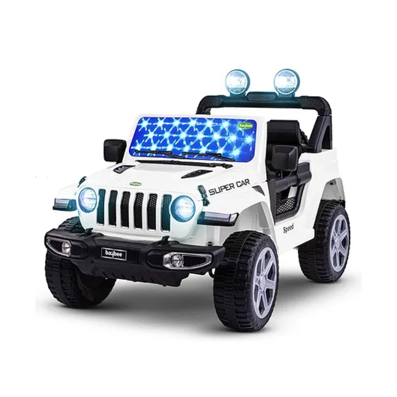 Baybee Robicun Electric Rechargeable Battery Operated Ride on Electric Jeep Car for Kids with LED Light & Music (White)