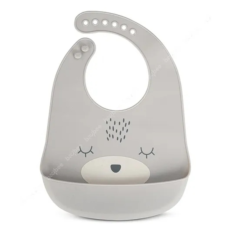 Baybee Waterproof Silicone Bibs for Baby with 6 Point Adjustable Button Closure & Crumb Catcher – Grey