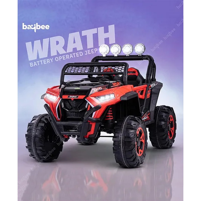 Baybee Wrath Electric Rechargeable Battery Operated Jeep Car with Bluetooth Music & Light – Red