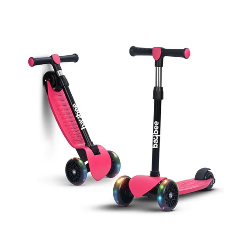 - Foldable Design Take It Anywhere, Anytime Say goodbye to bulky, hard-to-store scooters! The Baybee Zoomie Kick Scooter features a foldable design that makes it easy to store and carry wherever you go. Perfect for trips to the park, beach, or playground, this portable scooter fits into the trunk of your car or a small closet at home. Parents love its lightweight, space-saving design that keeps adventures hassle-free and spontaneous.