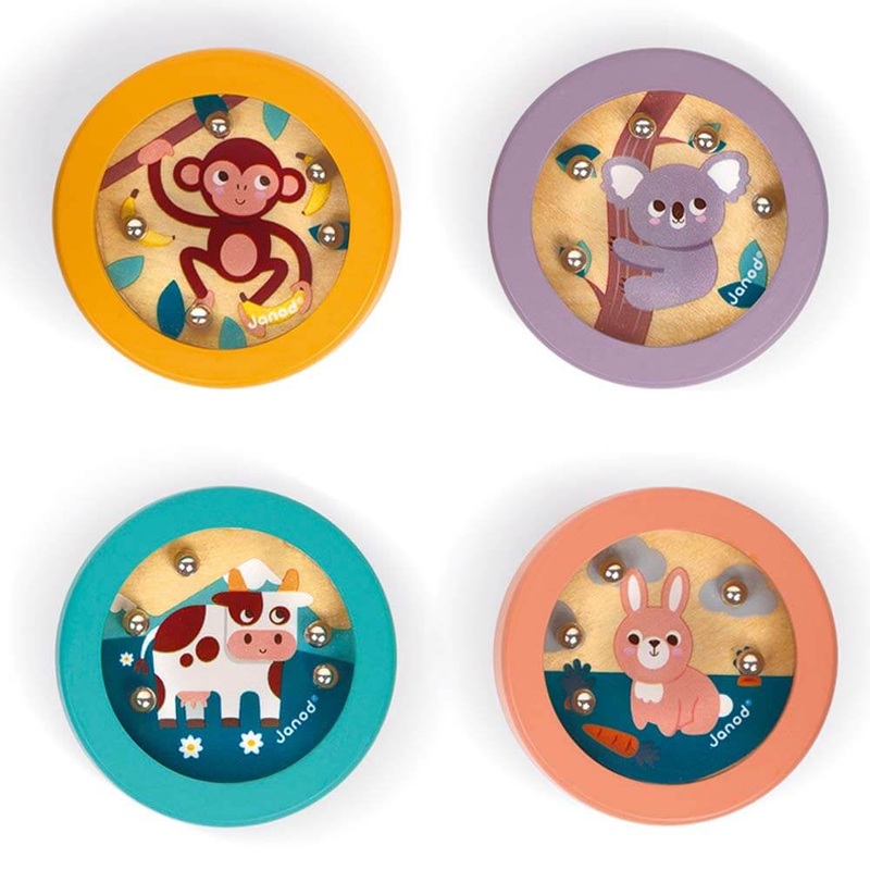 With Janod's Bead Games, childrenhave to exercise patience and dexterity to place the five metal beads in their hole. These FSC wooden miniature ball bearing games come in fourdesigns choose from, each featuring a different animal.How do you choose between