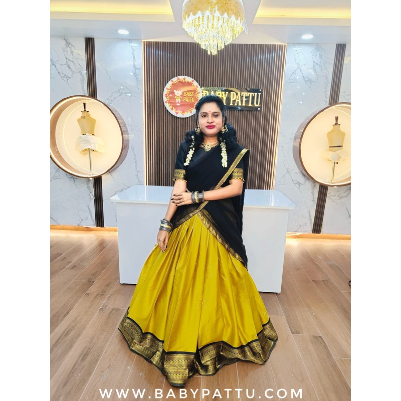 NY76387191Beautiful Black And Mustard Yellow Half Saree