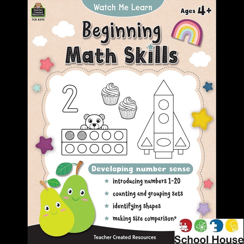 Beginning Math Skills Watch Me Learn WorkbookWatch Me Learn: Beginning Math Skillsfocuses on recognizing and understanding the numbers 120. Young learners will explore the amount each number represents by counting various sets of objects and using number l