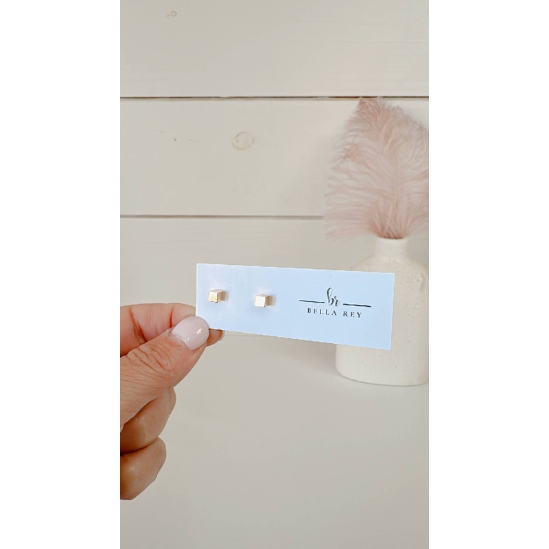 The Annie stud earrings*18k gold plated stud posts*dainty studs*4mm x 4mm*hypoallergenic *tarnish resistant*light weight All earrings come packaged with white branded earrings cards. Perfect for displaying.
