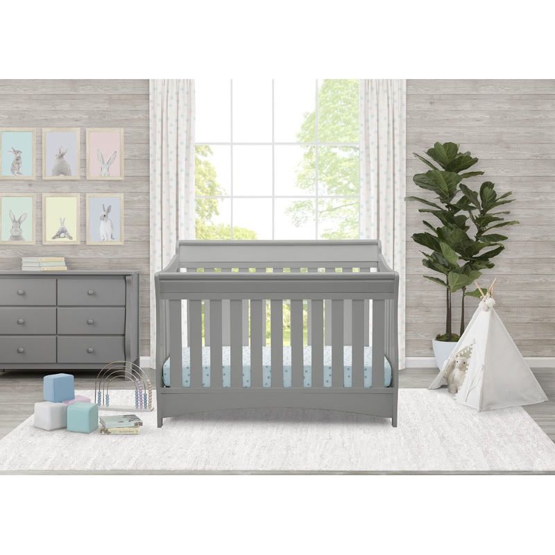 The Bentley S Series Deluxe 6-in-1 Convertible Baby Crib by Delta Children offers a modern take on classic style. Its sleigh silhouette, sizeable molding and airy slats all around add to the cribs timeless charm. For babys room and beyond, this versatile c