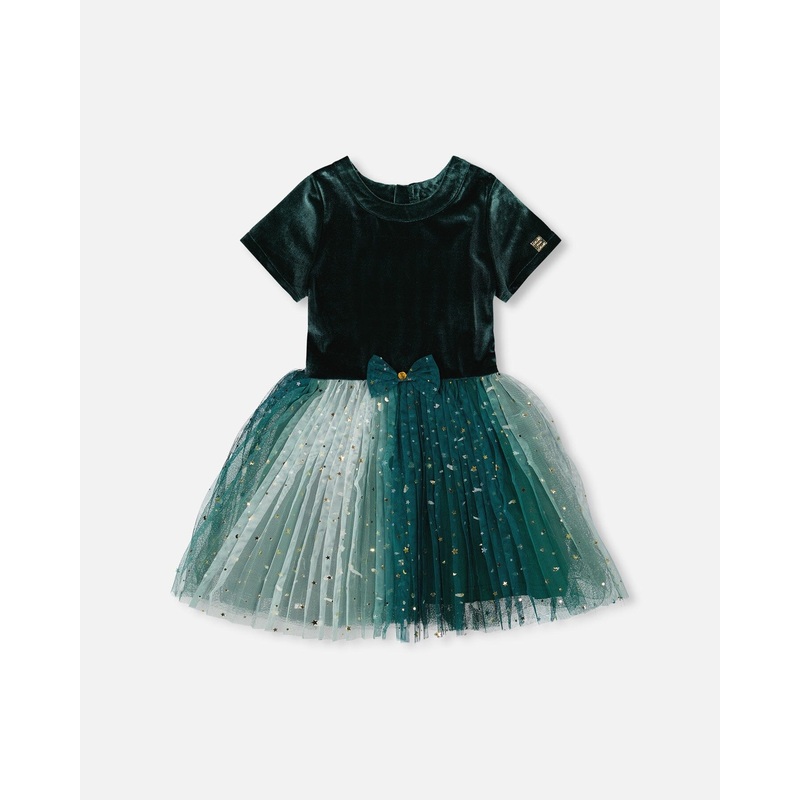 ZZG29832630Bi-Material Short Sleeve Party Dress Forest Green
