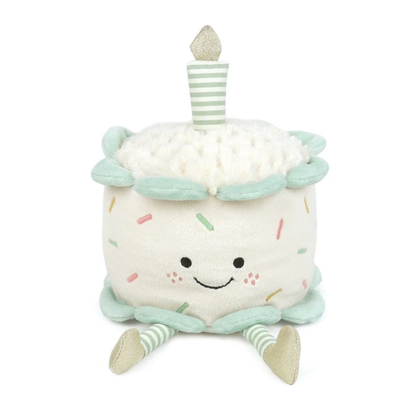 Celebrate every day like it's your birthday with Mon Ami's delightful plush Birthday Cake! Where sweetness and softness come together in the most playful way. This cuddly creation is a dream in velvety pastels, with a frosting of plushy swirls in creamy wh