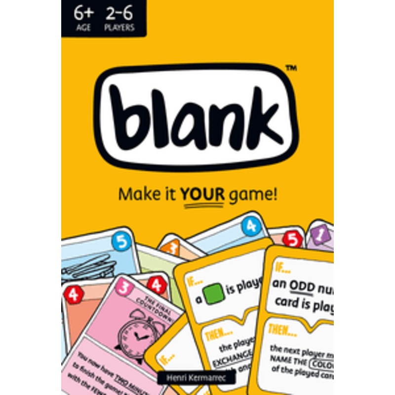 BLANKis the fast and fun interactive card game you customize with every win! As you play, you create new rules and card effects, making your copy ofBLANKunique.