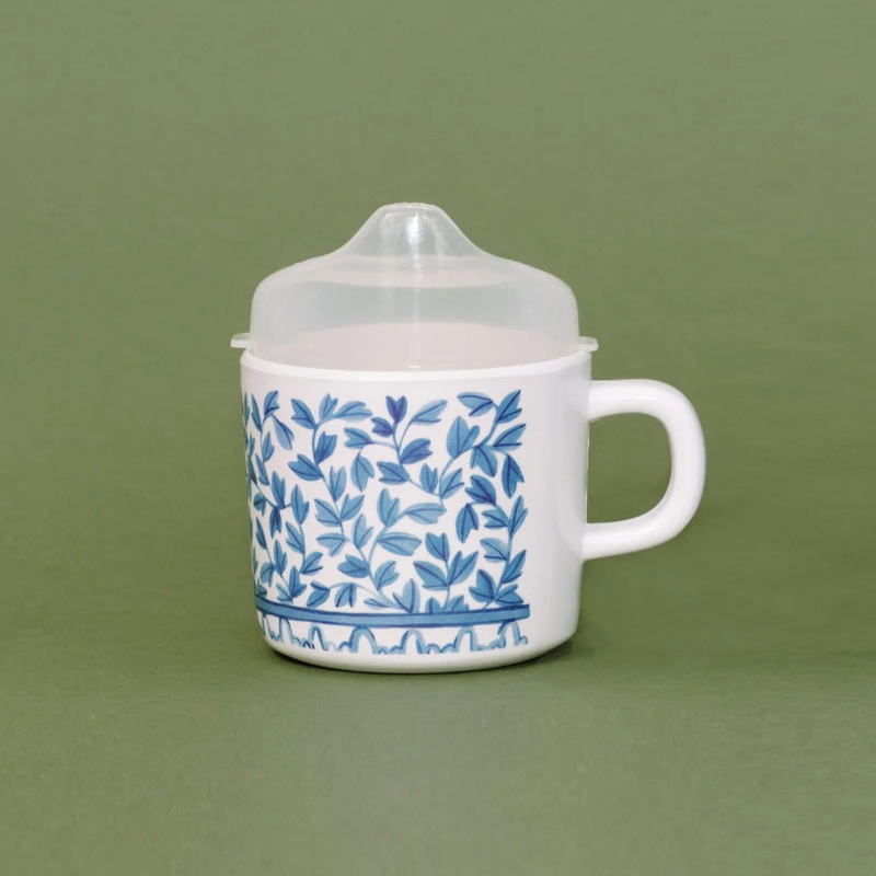 This watercolor design is our interpretation of the classic Chinese blue and white ceramics that Southerners love. The sippy cup has a removable clear top that can be set aside when it is time to transition to a toddler mug.We are very proud of this easy t