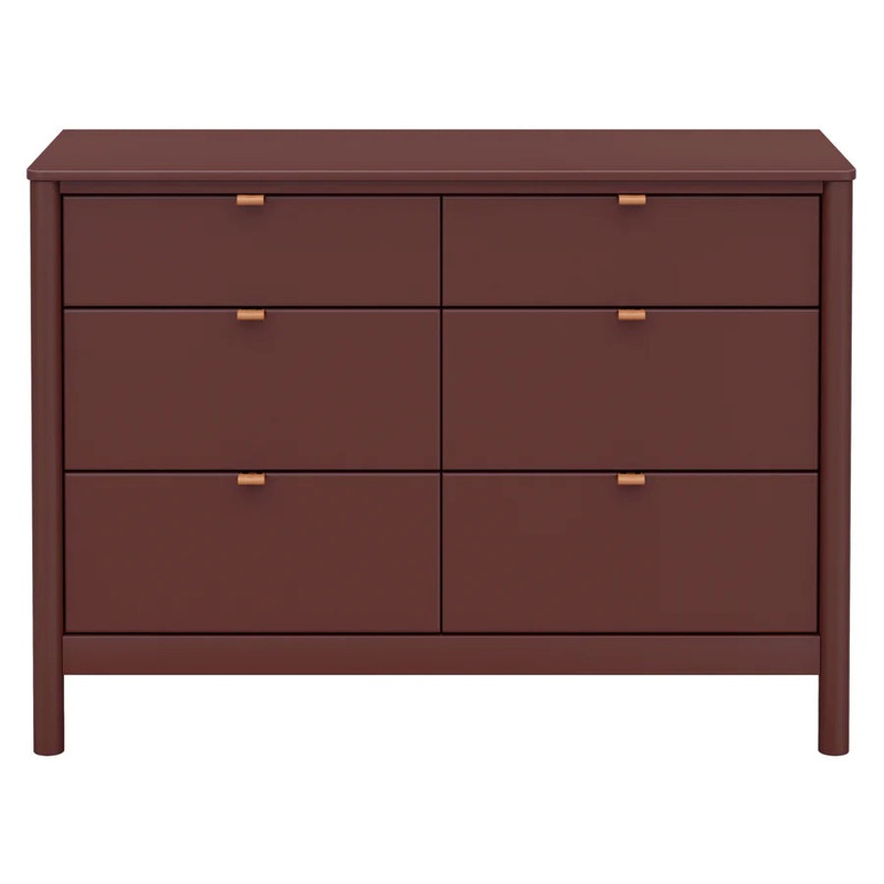 The simple yet sophisticated Bondi 6-Drawer Assembled Dresser complements both the Babyletto Bondi Cane 3-in-1 Crib and the Bondi Boucle 4-in-1 Crib with its warm wood finish and tonal vegan leather drawer pulls, rounded posts and minimalist silhouette. It’s designed for the nursery with spacious smooth-glide drawers, included anti-tip kit for safety, and best-of-all it arrives fully assembled, ready out of the box.
