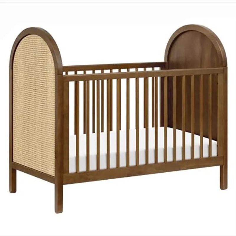 Bondi Cane 3-in-1 Convertible Crib with Toddler Bed Kit – Natural Walnut w/Natural Cane