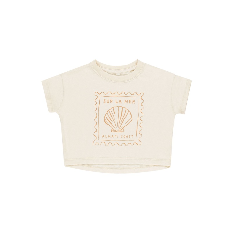 Boxy fit tee with a round neckline and dropped sleeves for a comfy fit.Featuring our 'seashell' spot print on our 'natural' hue. This postage stamp design is sure to spark a sense of wanderlust.Care: Machine wash cold. Tumble dry low.Made of 100% cotton.