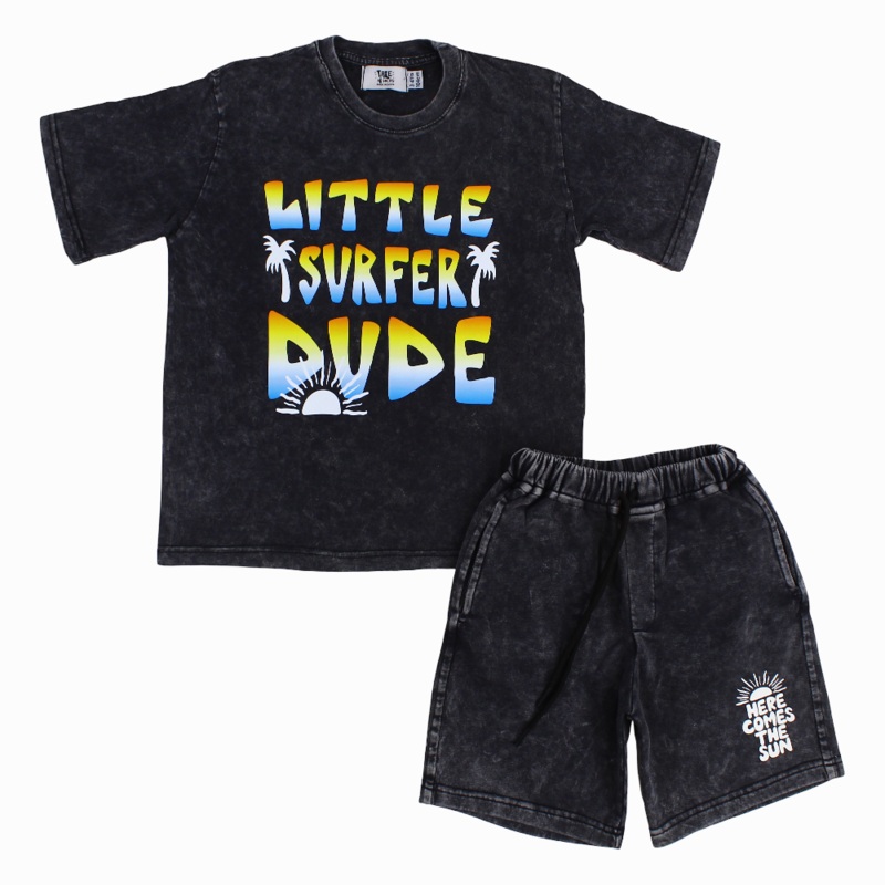 Soft cotton pajama set with summer-ready short sleevesFeatures playful Little Surfer Dude washed graphicBreathable, gentle on skin, and machine washableComfortable fit perfect for active toddlersGreat for warm nights and everyday lounging