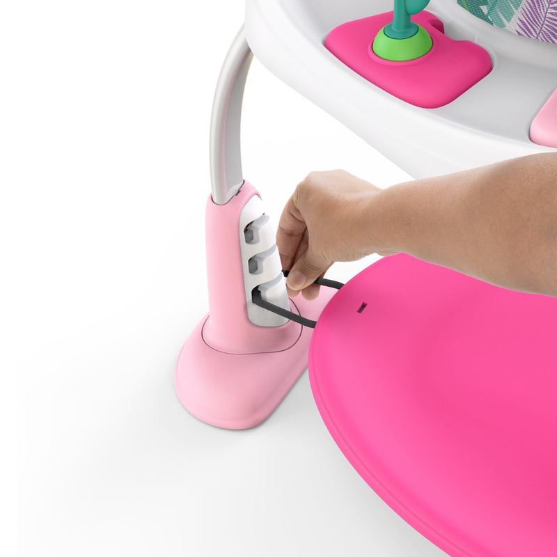 - Grow-with-me bouncy pad adjusts to three heights