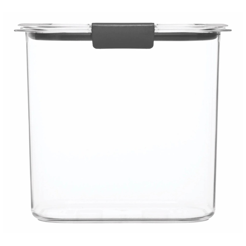 This Rubbermaid Brilliance pantry food storage container is built with tight seals and secure latches to help keep food fresh and prevent spills. The crystal-clear lid and base make it easy to see what’s inside the canister, and are stain- and odor-resistant, which helps them stay looking like new. This container is great for storing sugar and other pantry staples, and stacks neatly with other Brilliance containers in your cabinet and pantry.