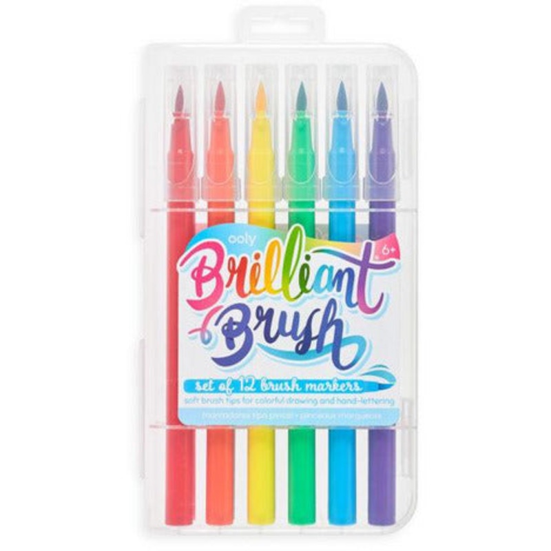 Ooly Brilliant Brush Markers set of 12Soft brush tip markers, great for drawing and hand-letteringAcid-free inksReusable caseSet of 1218 x 10 x 3 cm