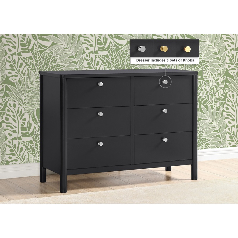 The mid-century design of the Brooks 6 Drawer Dresser with Interlocking Drawers by Delta Children will anchor any nursery with welcoming and timeless style. Modern circular legs, clean lines complete the look of this must-have dresser. With multiple sets o