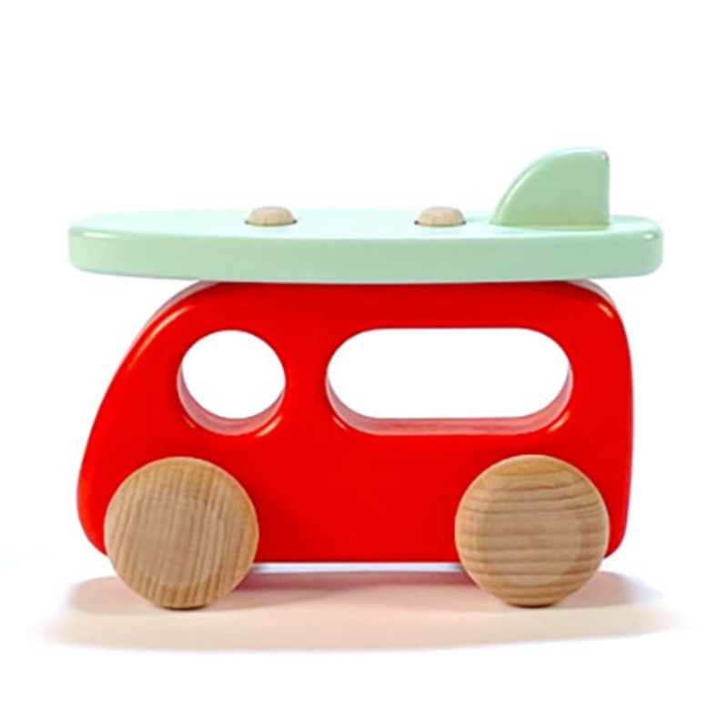 Let's go surfing now! A classic red camper with removable surfboard. A great toy van for children or a gift for the surf-lover.DETAILSAge:1.5 years +Made in Poland of eco-friendly beech wood and sycamore wood.Bajo makes heirloomquality sustainable wooden t