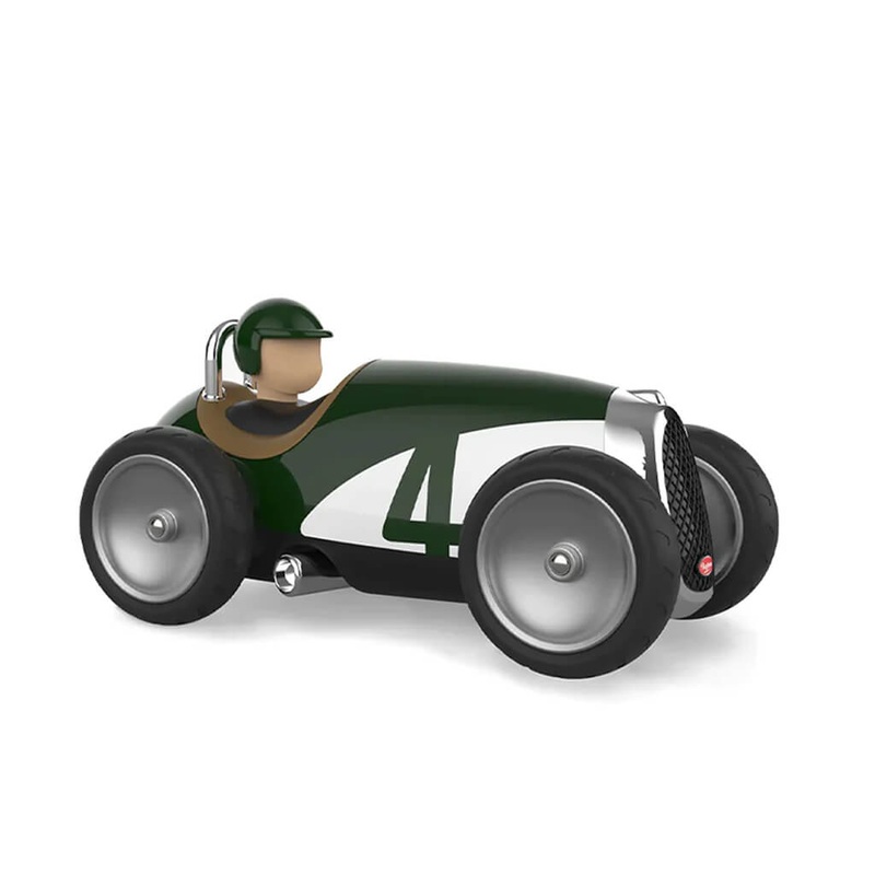 DescriptionPlastic Toy modeled after vintage racing car. Each model is durable and designed to play!SpecificationsDimensions: 8" x 3" x 3"Weight: 1 lbMaterials: Plastic, RubberAge: 3+Designed in France, Made in China