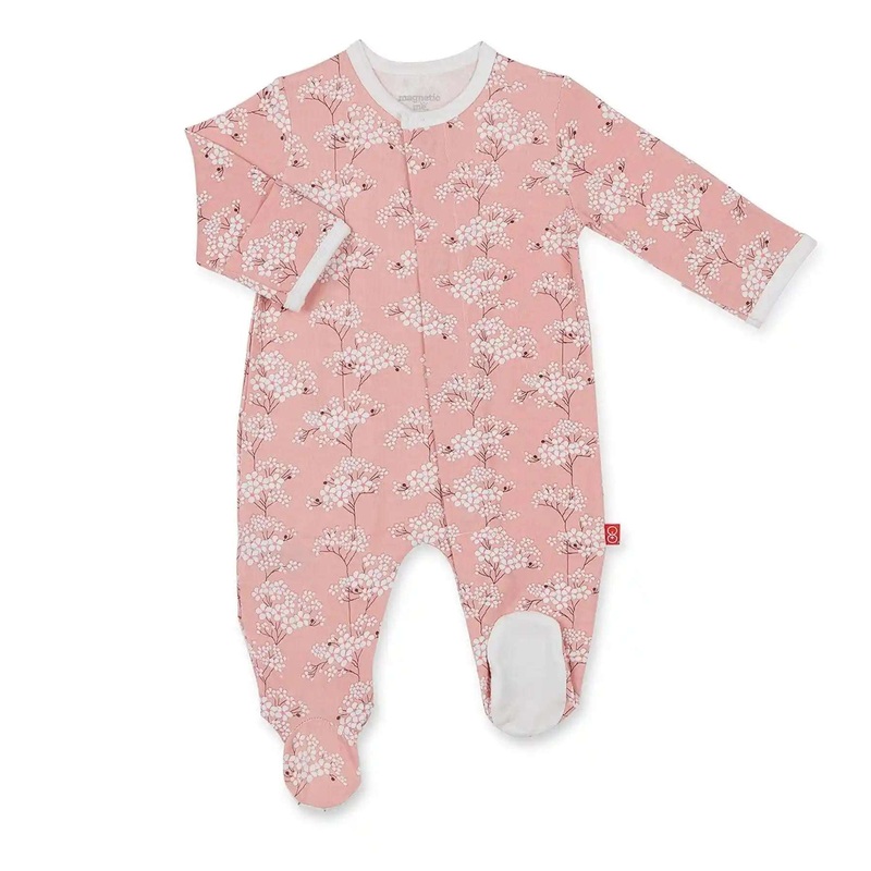 A soft, stylish all-day and all-night wardrobe staple with smart magnetic fasteners that makes changing time painless. With our no over-the-head design, simply open the outfit, insert baby, and BOOM, DONE! - the footie practically closes itself. Machine wa